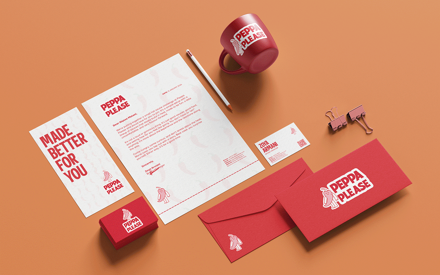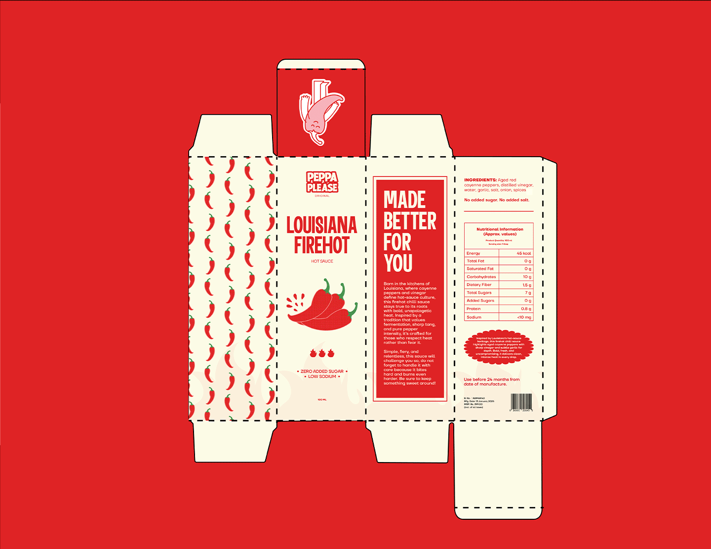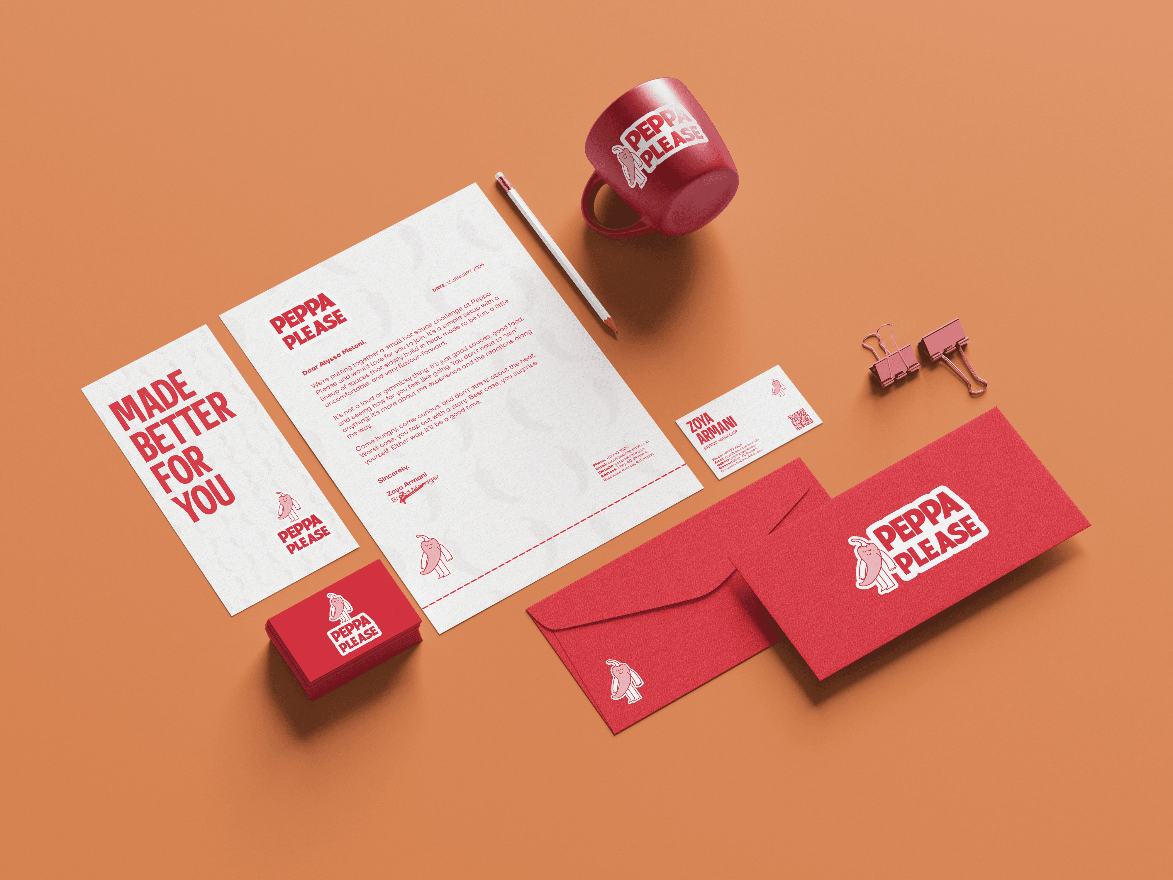 Peppa Please is a fun, bold hot sauce brand made for people aged 16-35 who enjoy flavour as much as heat. The branding focuses on strong typography, bright colours, and playful food-inspired visuals.
